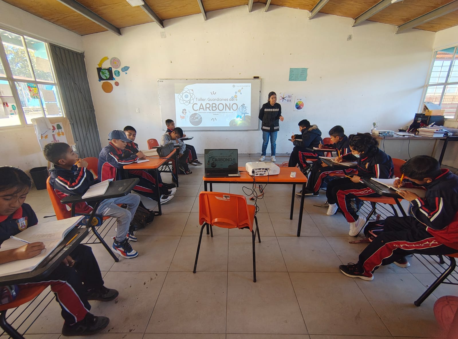 Como parte del proyecto de captura de carbono que se desarrolla en Santa Catarina Ixtepeji, el 25 de noviembre de 2025 se llevó a cabo un taller de educación ambiental titulado “Guardianes del carbono”, dirigido a estudiantes de 4.º a 6.º grado de la Escuela Primaria José María Morelos, en la agencia de Yuvila. En el taller participaron 13 niños de entre 9 y 12 años.