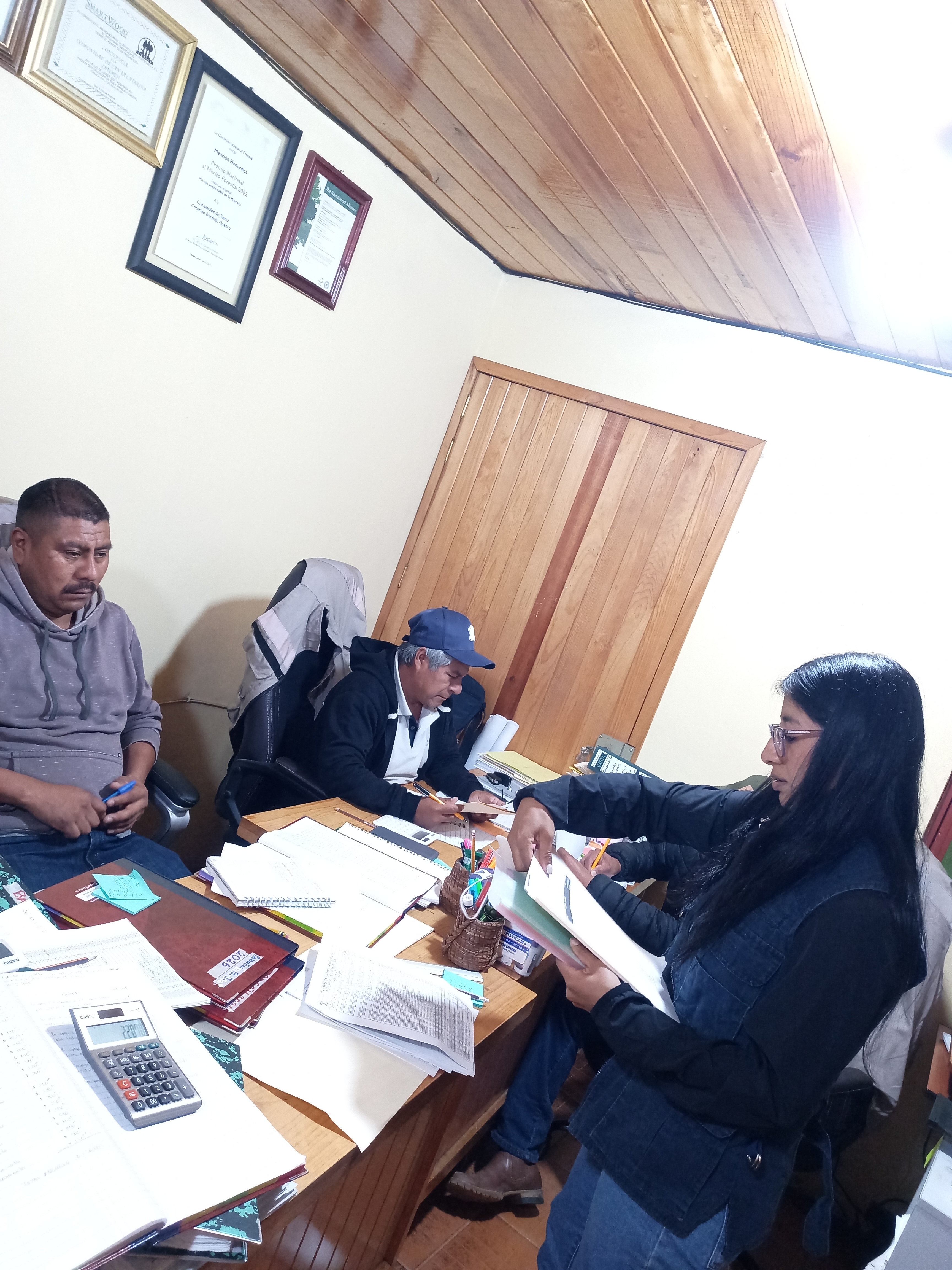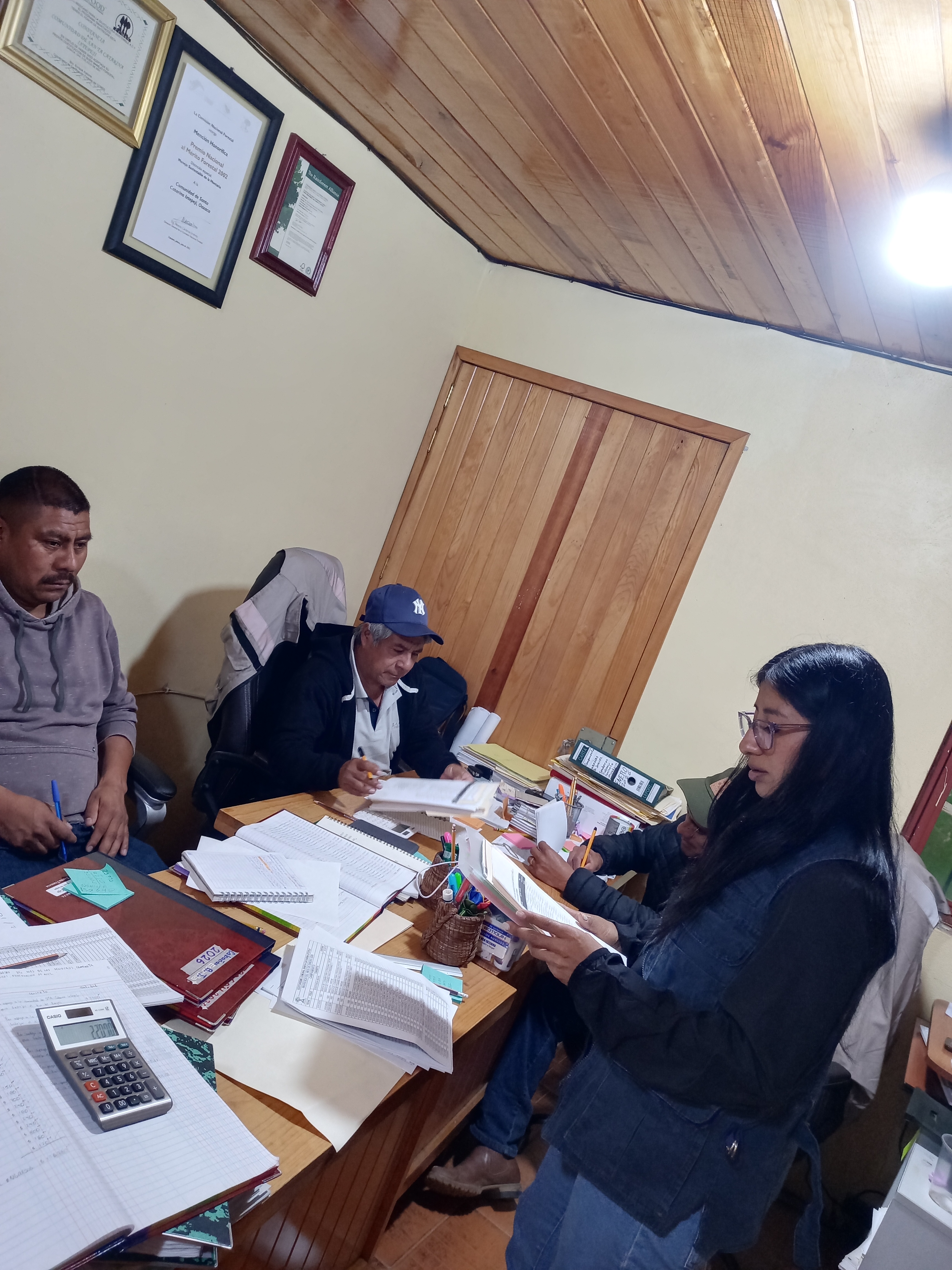 El equipo de Yaax-Carbon asistió a las oficinas de Bienes Comunales de Santa Catarina Ixtepeji, ubicadas en La Cumbre Ixtepeji, con la finalidad de brindar información detallada y actualizada a las autoridades sobre los avances del proyecto de captura de carbono forestal, el proceso de verificación, el contenido del Acuerdo de Implementación del Proyecto (PIA) y los requisitos para su firma, en la reunión estuvieron presentes el C. Manuel Martínez Méndez, presidente propietario del Comisariado de Bienes Comunales, así como el secretario, el tesorero y otros tres comuneros integrantes de la misma autoridad, además del equipo de Yaax-Carbon.