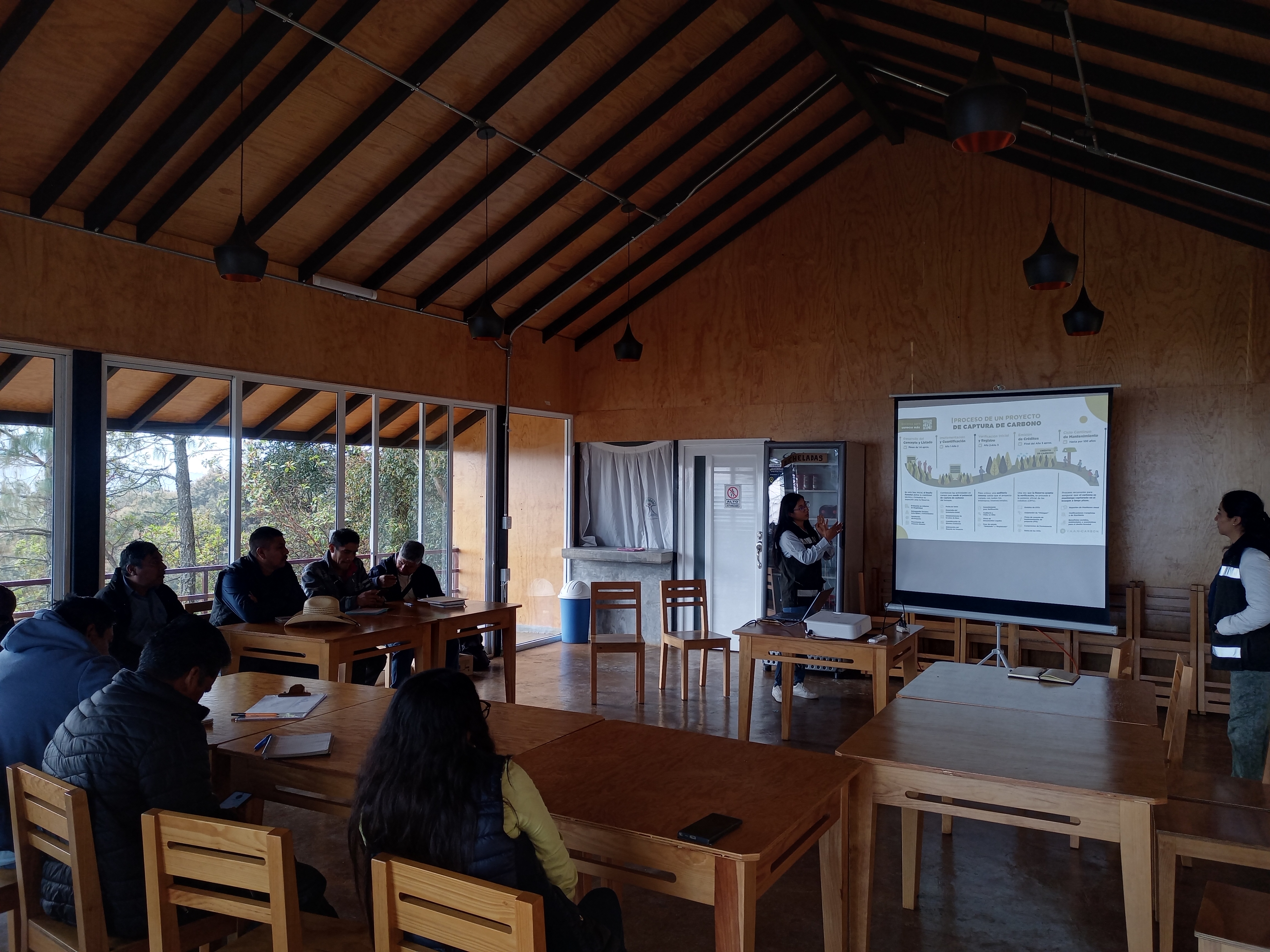 El 30 de marzo de 2026, en las instalaciones del comedor de las cabañas “La Cumbre” en Santa Catarina Ixtepeji, se llevó a cabo una reunión informativa clave para el avance del proyecto de captura de carbono, en la que participaron 13 comuneros miembros de las autoridades de Bienes Comunales, la contadora de las empresas comunitarias de Ixtepeji y el equipo de Yaax-Carbon.